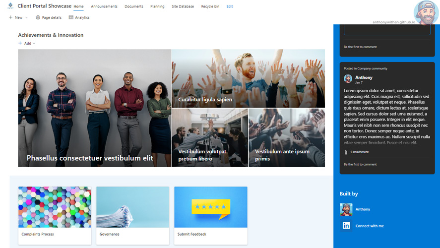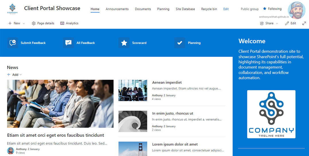 I built this integrated client portal using Microsoft SharePoint to transform the way organisations engage with their clients. By centralising secure document storage, collaboration tools and real-time dashboards into one dynamic workspace, this solution provides indispensable customer care while streamlining communication.